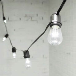 Edison string lights are a traditional and timeless decorative lighting style, perfect for both indoor and outdoor venues. They add both practical and mood-enhancing light. Our LED Edison lights are low energy consumption, allowing you to connect up to 8 strands end-to-end. Our Edison strands feature shatter-resistant plastic LED bulbs that give a warm white white. Heavy-duty, weatherproof cord suitable for any location.