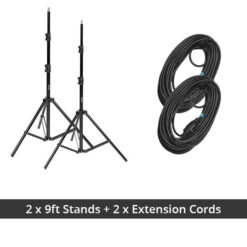 If you need to illuminate the night this package is for you. Our white wash cannons are extremely powerful and popular (book early because these babies rent out). Whether it’s a basketball court, stage lighting, or evening party our cannons will light a large area with warm white light. Unlike most flood lights that produce cold white light these cannons emit 3,500 kelvin warm white light, are LED so the units don’t get hot, and come in a relatively small package (each unit weighs only 7.6 pounds and measures 8.6 x 9.65 x 12 in). This package includes 2 white wash cannons, 2 stands to hold both lights, and two heavy duty extension cords.